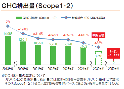 は、2030年度までに2013年度比で55%削減することを中期目標としております。